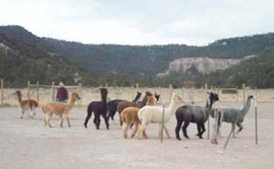 In addition to raising Alpacas, we also breed and sell Llamas for packing and pleasure. Our 40 acre ranch is bordered by National Forest at the edge of the Escudilla Wilderness and we are fortunate to be able to enjoy the abundant wildlife and scenery our area has to offer as we hike the trails with our Llamas. We have decided to share our wealth with others by offering Llama hikes from our ranch location. We can tailor your outing based on your specific needs, desires, and number in your party, so pricing and times vary. Call or email to discuss options and pricing.